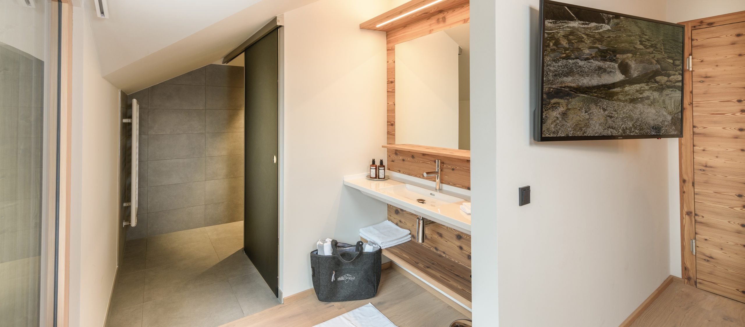 Im obersten Stock warten die neuen Loftsuiten – mit viel Licht, Weite und Berggefühl. Hochwertige Naturmaterialien verbinden Stil, Eleganz und alpine Tradition, dazu kommen ausgewählte Stoffe und liebevolle Details. So entsteht ein Rückzugsort mit einem Hauch Dolce Vita und einem Maximum an Wohlgefühl.